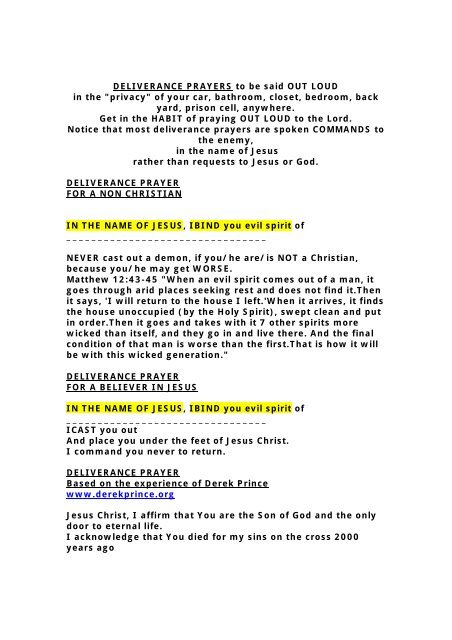 Deliverance Prayers To Be Said Out Loud In The Quot Privacy Quot Of